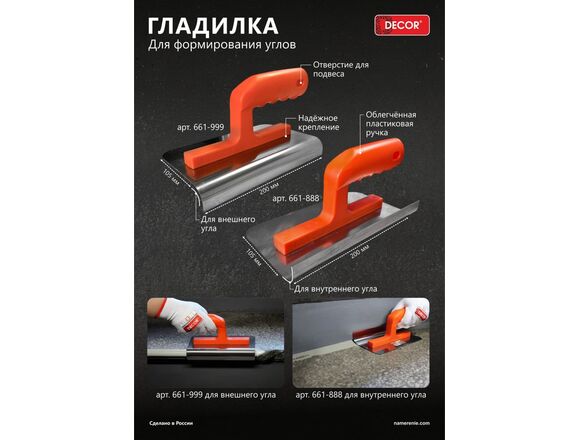 Гладилка DЕCOR 200х105 мм,для декоративного бетона,для внешних углов (9шт/27шт)