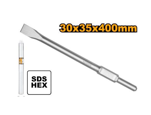 Зубило плоское INGCO служит для работы совместно с перфораторами с шестигранным типом крепления. Применяется для долбления выемок в кирпиче, бетоне, камне, подходит для работ по демонтажу.