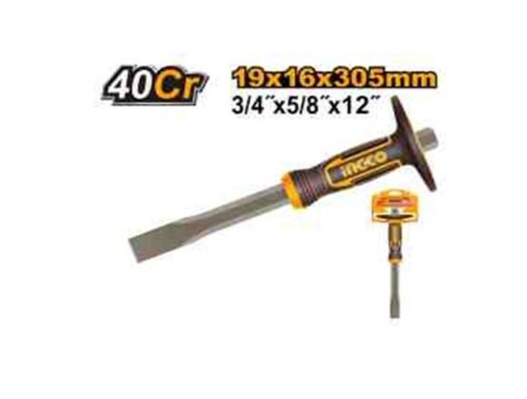 Зубило ручное плоское INGCO INDUSTRIAL 305*16*19мм, ПРОТЕКТОР + 2К ручка (6/24)