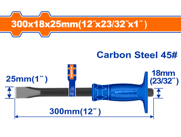 Зубило ручное плоское WADFOW 25*18*300мм С ПРОТЕКТОРОМ (1/36)