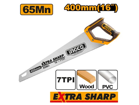 Ножовка по дереву INGCO 400мм, 7TPI, EXTRA SHARP (6/24)