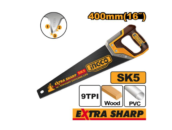 Ножовка по дереву INGCO INDUSTRIAL SK5 400мм, 9TPI, ТЕФЛОН (6/24)