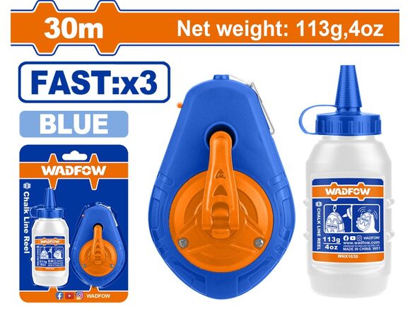 Шнур отбивочный WADFOW 30м+краска ( СИНИЙ )(1/36)