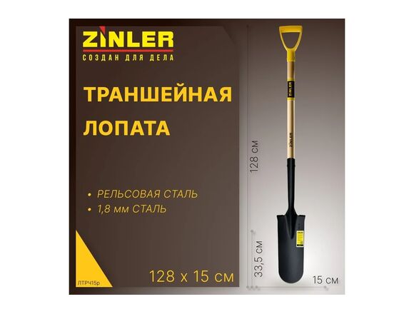 Лопата ZINLER траншейная с деревянным черенком 740 мм и ручкой Z1.11H15G (1/5)