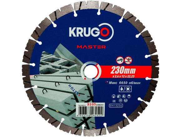 Диск алмазный Сегмент KRUGO MASTER 230*2,6*22,2*12 mm по бетону