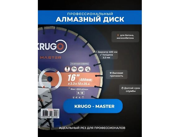 Диск алмазный Сегмент KRUGO MASTER 400*25,4*40*3,3*10mm по бетону (лазерная наварка)