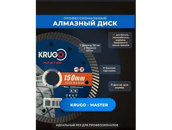 Диск алмазный Турбо KRUGO MASTER 150*2,2*22,2*12 mm по железобетону