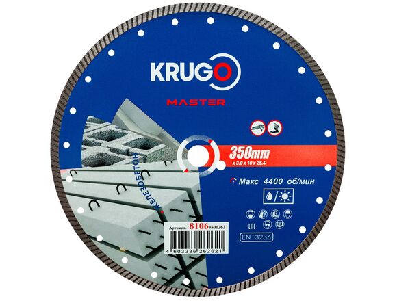 Диск алмазный Турбо KRUGO MASTER 350*3*25,4*12 mm по железобетону