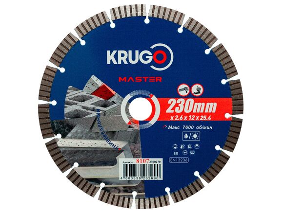 Диск алмазный Турбо-Сегмент KRUGO MASTER 230*2,6*25,4*12 mm