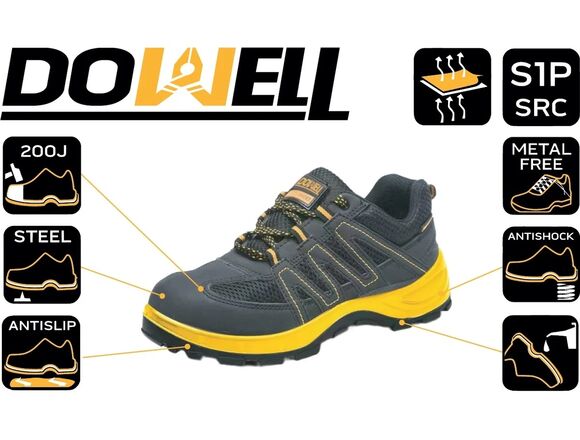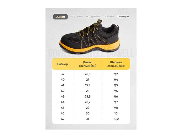 Полуботинки рабочие, DOWELL иск. кожа, сетка, стальн. стелька, чёрный/жёлтый, р-р 41
