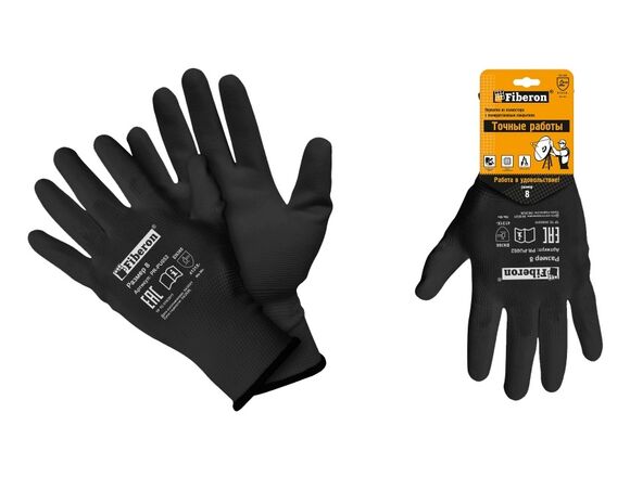 Перчатки FIBERON МАЛЯР "Точные работы", полиэстер, полиуретановое покрытие, в и/у, 9(L), черные,