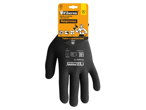 Перчатки FIBERON "Микроточка", полиэстер, ПВХ-точка, в и/у, 10(ХL), черные (12/120)