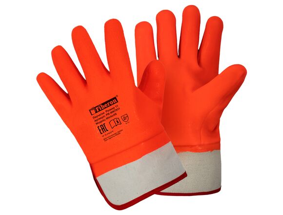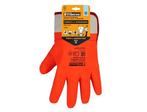 Перчатки FIBERON "Стойкость к загрязнению утепленные, манжета-крага" хлопок+флис, ПВХ покрытие, в