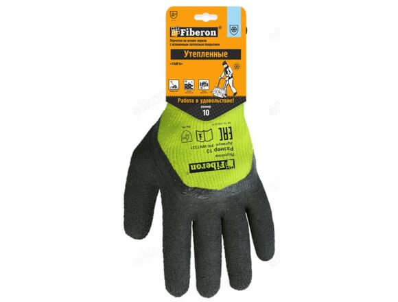 Перчатки FIBERON ТАЙГА"Утепленные плюс", акрил, вспененное латексное покрытие, в и/у, 10(XL) (12/60)