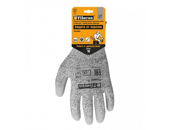 Перчатки FIBERON "Защита от порезов" со стекловолокном ппу покрытие в и/у, 10(XL) (12/60)