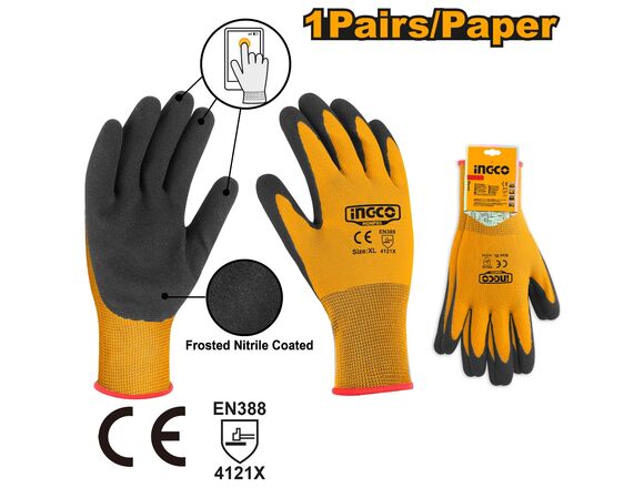 Перчатки INGCO SS полиэстр + нитрил МАТОВЫЙ ЧЕРНЫЙ, XL (индивидуальный подвес) (1/12/120)