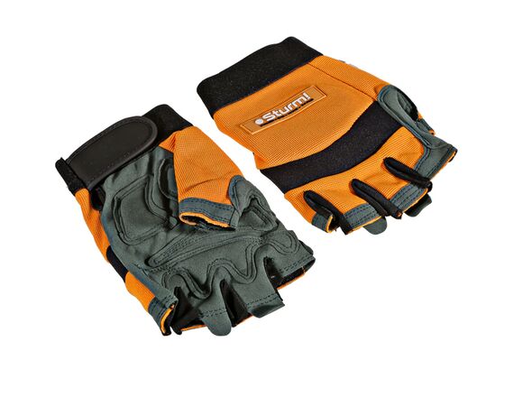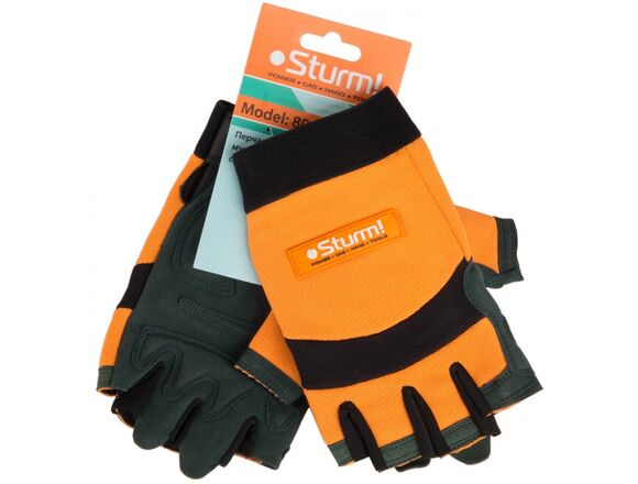 Рабочие мужские перчатки с обрезанными пальцами Sturm р.XL 8054-02-XL защищают руки от загрязнений и мелких повреждений. Предназначены для строительных и садовых работ.