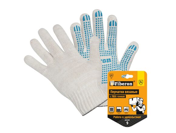 Перчатки FIBERON вязаные ХБ, с ПВХ-точкой, 52 г 10 кл белые в и/у (10/200)