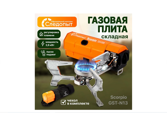 Плита настольная газовая СЛЕДОПЫТ с открытой горелкой "SCORPIO" ТРАНСФОРМЕР (90*265мм - 300*340мм)